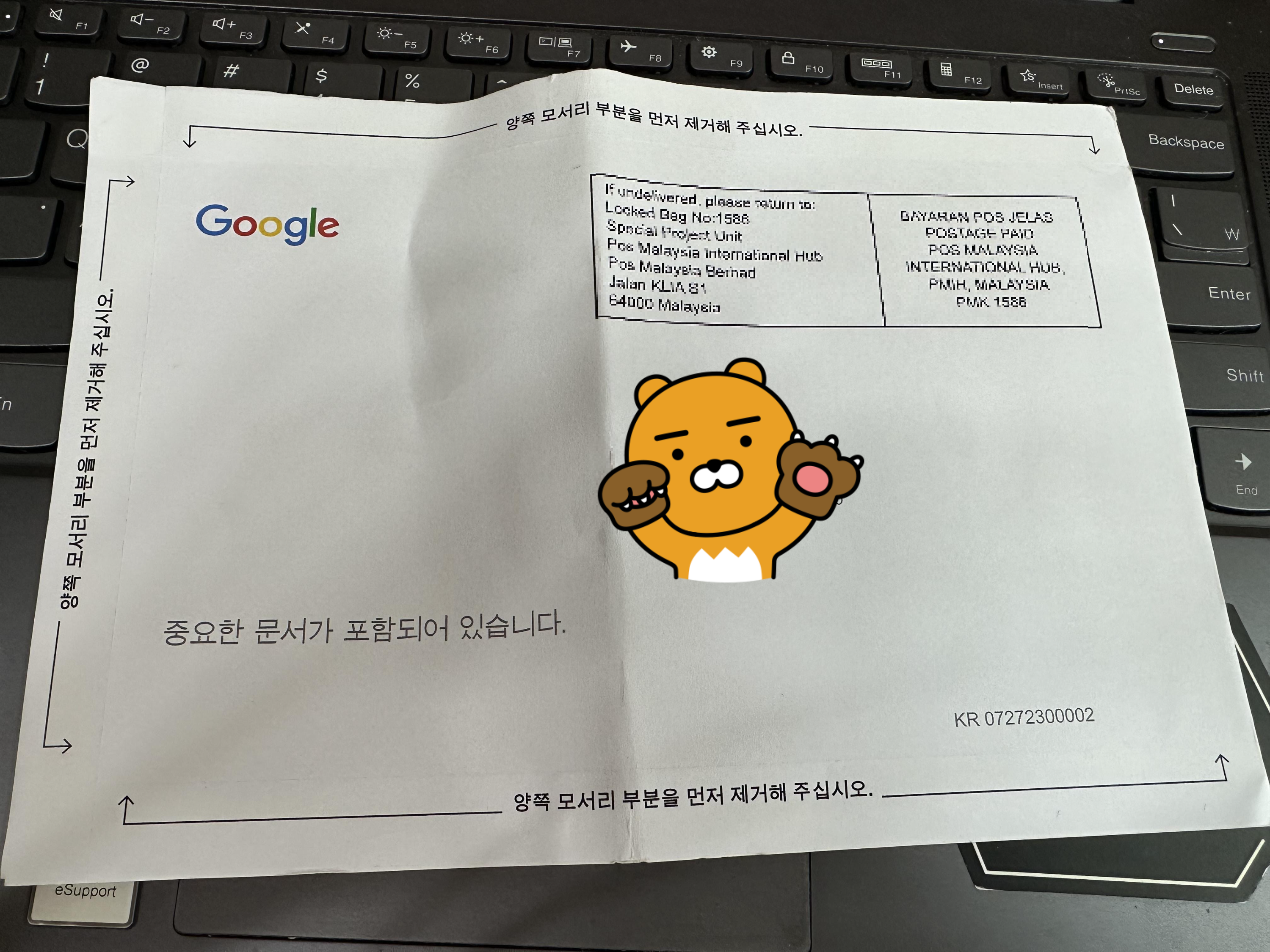말레이시아 에서 발송되었는데