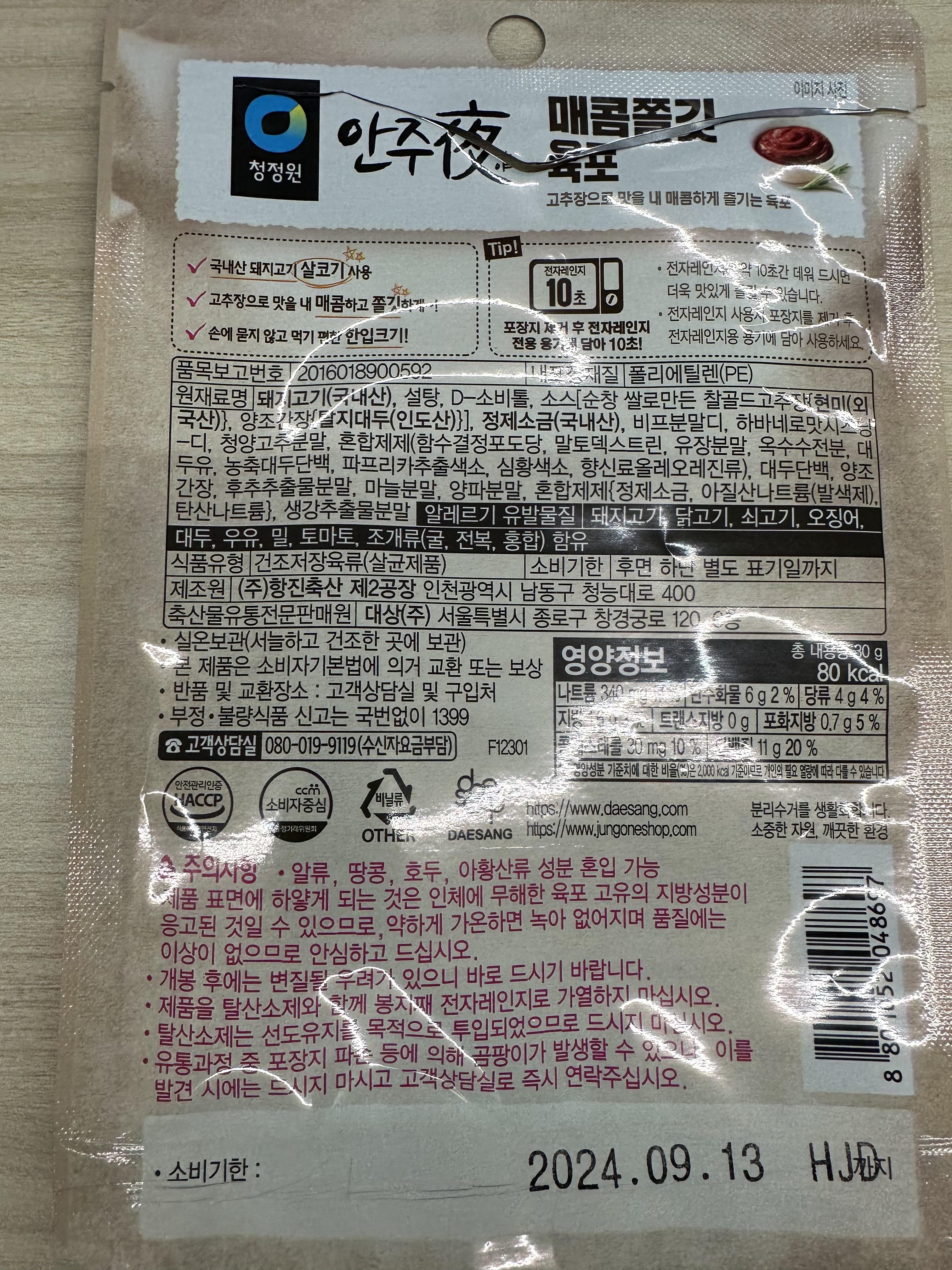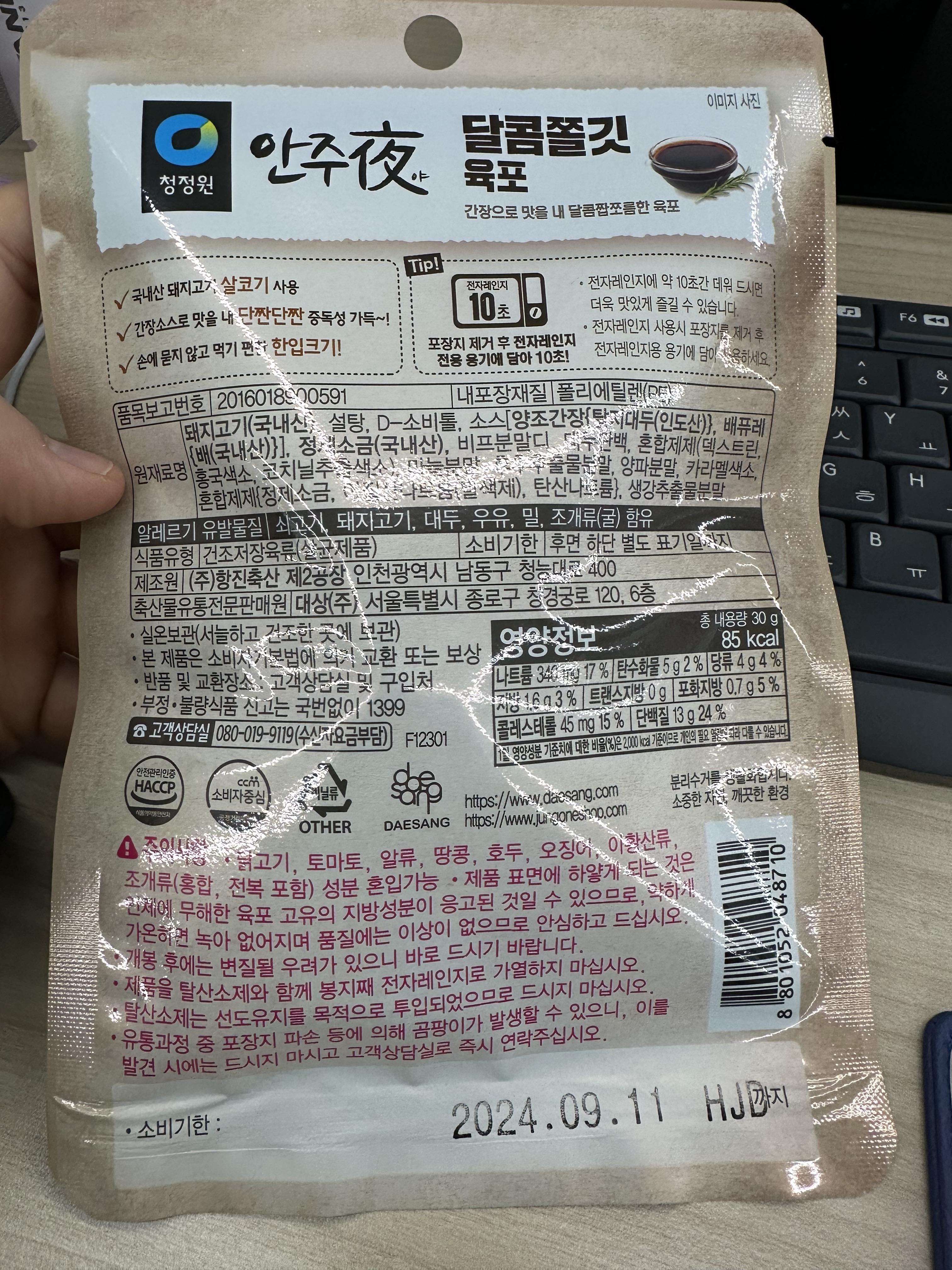 청정원 안주야 육포 세부 정보