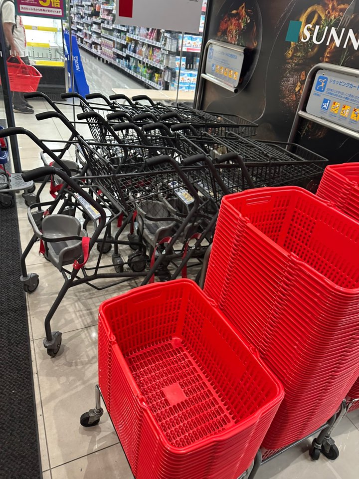 입장하면 카트와 바구니가 구비되어 있다. 비가 와서 그런지 우산도 판매하고 있었다.